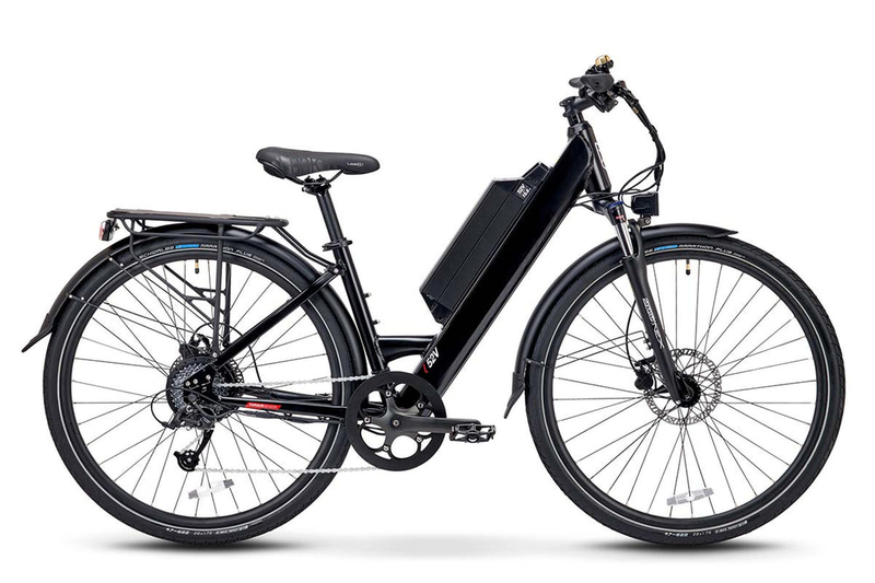 The 700C Step-thru Electric Mountain Bike Juiced Cross Current City Commuting CC-ST is the perfect e-bike for both city commuting and trekking. Powered by a 750W motor, it provides ample energy for daily use, whether you're navigating urban streets or exploring off-road trails. Its durable aluminum frame ensures stability and resilience, even in challenging environments. The step-thru design allows for easy mounting and dismounting, making it an ideal choice for riders of all ages. Additionally, with the option to add a rear luggage rack, this bike can become a great tool for family travels or errands.
